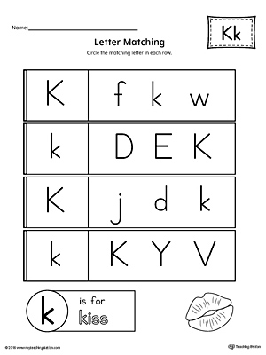 Includes recognizing letters, tracing and printing letters, matching uppercase and . Picture letter match · letter k printable worksheet ;